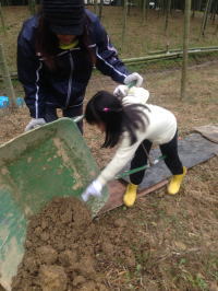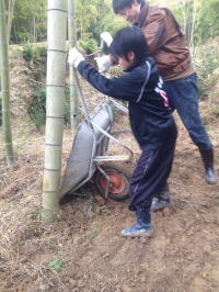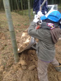 柔らかい土を竹の子林にかけてあげるのが竹の子の土入れ。