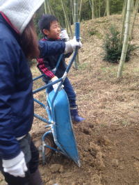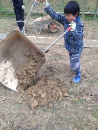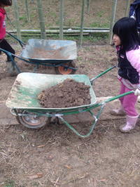 重たい~とヨロヨロしながら、一生懸命、でも、楽しそうに土をせっせと運んでくれました。