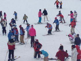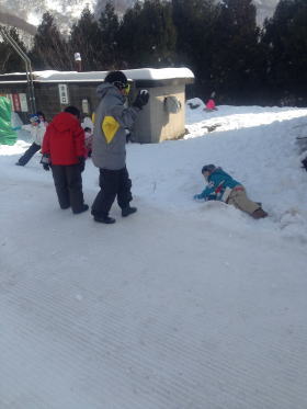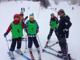 わんぱくのスキーでは、子供が滑れるレベルに合わせてチーム編成を行い、大人がそれぞれのチームにつきます。